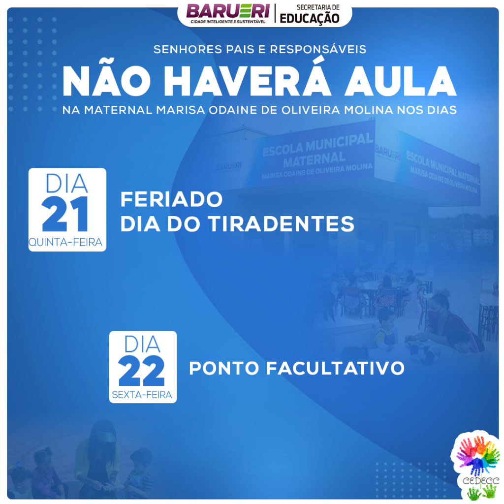 Atenção pais e responsáveis para o cronograma de dias que não terão aula em nossa maternal! By admin19 de abril de 2022Eventos, PostagensLeave a Comment on Atenção aos dias letivos…
